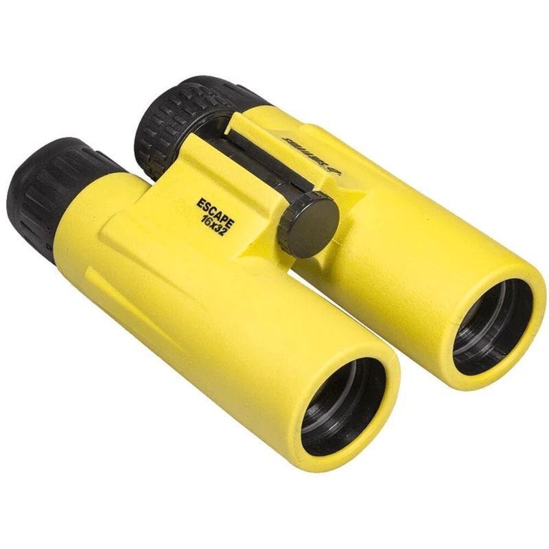12 Survivors Escape 16×32 Yellow Binoculars bring your outdoor world into focus. Designed to stand up to your extreme outdoor lifestyle, IP55 weather-resistant Escape binoculars pack a big punch when it comes to rugged reliability. ABS plastic and rubber armor construction protect internal components while advanced, multicoated glass provides the kind of distortion free, razor sharp clarity you need for observing wildlife, birdwatching, taking in a stunning landscape or looking for a way out of a bad situation.