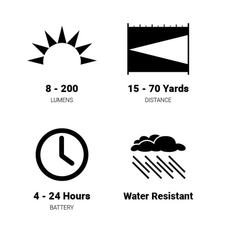 Everything you want in a headlamp, when and where you need it. This power-packed and versatile headlamp has features to fit your every need. With five light modes, a powerful white LED bulb and spot-to-flood focus control, the Maxus leaves you in complete control. Â