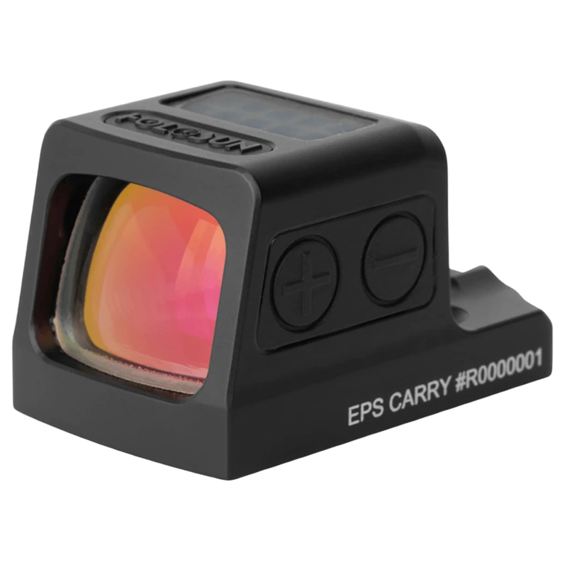 The EPS Carry–RD-MRS is an enclosed handgun sight designed for narrower, subcompact handguns. EPS Carry–RD-MRS features an aspheric lens for a perfectly clear sight picture and has an ultra-low dot height for compatibility with most factory iron sights. EPS Carry–RD-MRS is made of 7075 aluminum, includes a built-in rear notch sight, and utilizes Holosun’s popular K footprint. An RMSc-to-K footprint adapter plate is included for maximum compatibility.