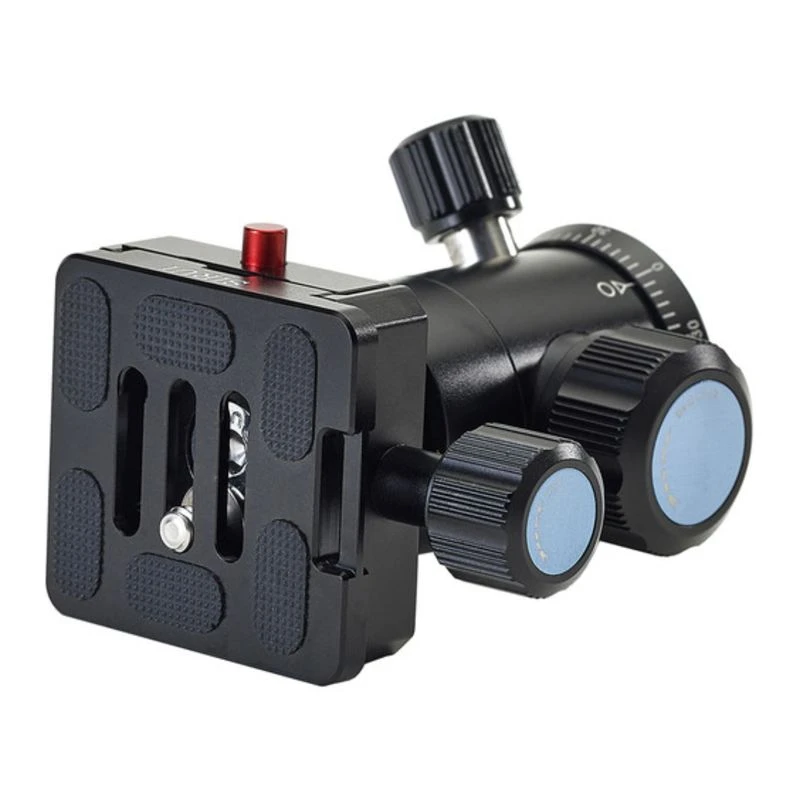 The E-10 ball head and a quick-release plate are supplied with the ET-1204 tripod . The ball head provides separate adjustment knobs for panning and locking, the locking knob is metal with a solid grip and wear-resistant surface. The E-10 ball head’s locking mechanism can support up to 40 lb and is built to for smooth, vibration-free movement. A bubble-level is supplied for fast and accurate alignment.