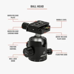 - Ultra-smooth 2-way video pan head with quick release plate, back-up safety lock, and sturdy long pan handle