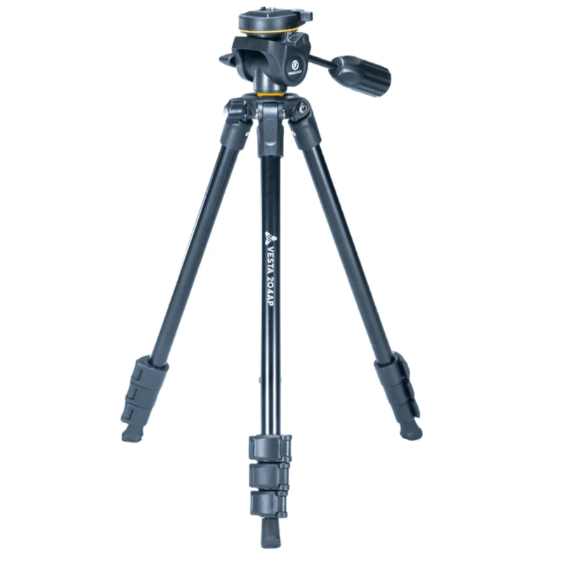 The Vesta 233AP aluminum 3-section tripod kit uses a smooth operating, ergonomic PH-23 pan head along with an easy-to-adjust quick flip leg lock tripod. Excellent quality for the engaging image maker!
