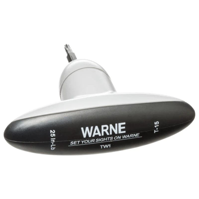 The Warne TW-1 Torque Wrench allows you to precisely tighten Torx style screws to Warne’s recommended torque setting of 25in/lb. A simple, breakaway design lets you know when the proper torque has been reached. Designed for both bases and rings, this unit is a must have when installing Warne bases, rings, and tactical mounting systems. The TW-1 features a comfortable grip design that offers enhanced control during scope and ring installation, so you won’t slip and mar your firearm. Wrench includes a T-15 bit and is preset at 25in/lbs (non-adjustable); bit cannot be exchanged with another size. Built for Warne by California Torque Products.